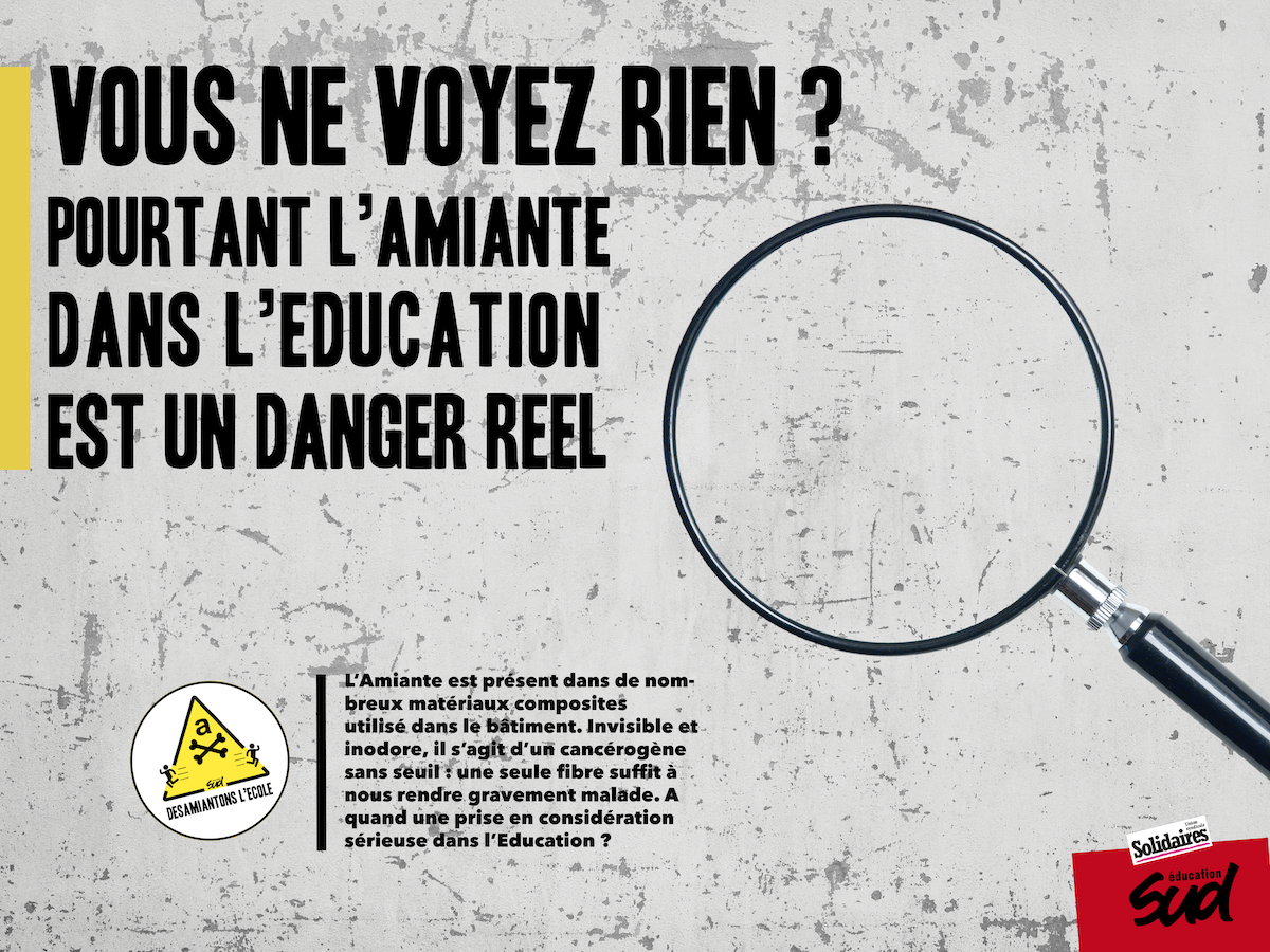 C’est pourquoi SUD éducation lance une grande campagne contre l’amiante en milieu scolaire et universitaire.